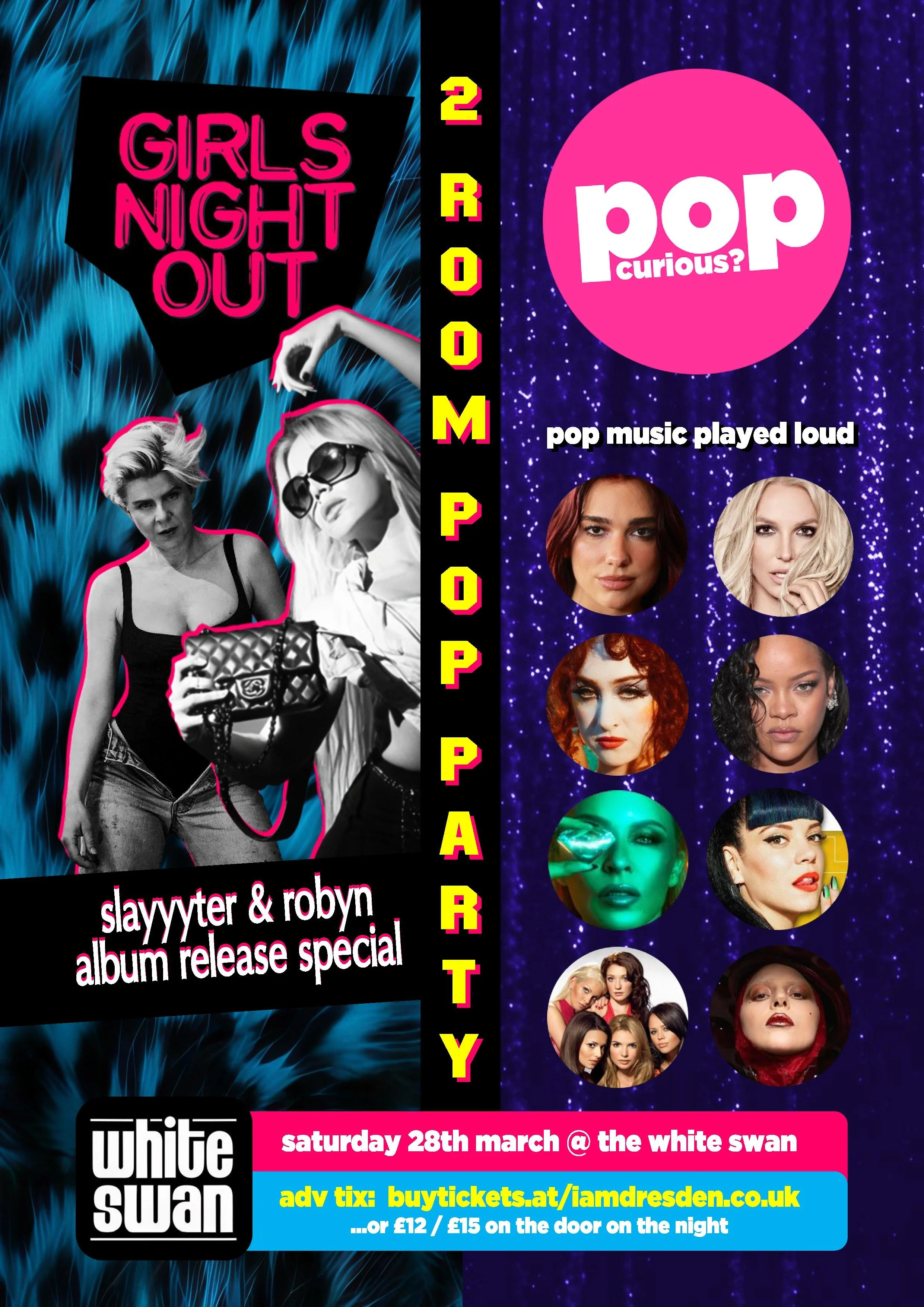 2 Room Pop Party!Girls Night Out and Pop Curious? return to The White Swan for a two room pop party!